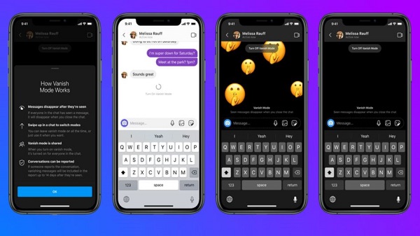 ഫേസ്ബുക്ക് മെസഞ്ചറിനും ഇൻസ്റ്റാഗ്രാമിനുമായി 'വാനിഷ് മോഡ്' എന്ന പുതിയ ഫീച്ചർ ഫേസ്ബുക്ക് അവതരിപ്പിച്ചു. ഈ ഫീച്ചർ പേര് സൂചിപ്പിക്കുന്നത് പോലെ തന്നെ മെസേജ് സ്വീകരിക്കുന്ന ആൾ അത് ഓപ്പൺ ചെയ്ത് കണ്ട ഉടൻ ഓട്ടോമാറ്റിക്കായി ഡിലീറ്റ് ചെയ്യുന്ന സംവിധാനമാണ്. ഉപയോക്താക്കൾക്ക് വാനിഷ് മോഡിൽ മെമ്മുകൾ, ജിഫുകൾ, സ്റ്റിക്കറുകൾ എന്നിങ്ങനെയുള്ളവ അയക്കാൻ സാധിക്കും. ചാറ്റ് ഹിസ്റ്ററിയിൽ കാണാത്ത വിധം അയക്കുന്ന മെസേജുകൾ ഓട്ടോമാറ്റിക്കായി ഡിലീറ്റ് ചെയ്യാനും ഈ ഫീച്ചറിന് സാധിക്കും.