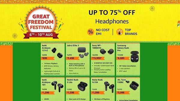 ഇയർബഡ്സിന് 70 ശതമാനം വിലക്കിഴിവുമായി ആമസോൺ ഗ്രേറ്റ് ഫ്രീഡം ഫെസ്റ്റിവൽ സെയിൽ