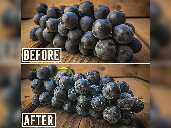ഈ രീതി എങ്ങനെ പ്രവര്ത്തിക്കുന്നു എന്ന് തെളിയിക്കാന്, ഒരു കൂട്ടം മുന്തിരിയില് കുറച്ച് വെളളം തളിച്ച് എടുത്ത ഫോട്ടോ ആണ് ഇത്.