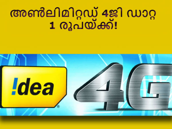 ഐഡിയ 3ജിയില് നിന്നും അണ്ലിമിറ്റഡ് 4ജി ഡാറ്റ 1 രൂപയ്ക്ക്!
