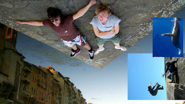 പിടിച്ചോ.. ഇപ്പോൾ താഴെ പോകും.. കണ്ടിട്ട് അതിശയം തീർന്നില്ലെങ്കിൽ ഒന്ന് ചെരിഞ്ഞു നോക്കൂ. സംഭവം പിടി കിട്ടും. നേരെയുള്ള ഒരു സ്ഥലത്ത് ഒരാൾ കിടക്കുന്നതും ഒരാൾ ചാടുന്നതും കാണാം.
