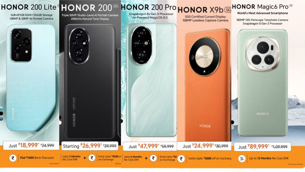 ഇന്ത്യയിൽ ലോഞ്ച് ചെയ്യുന്ന സമയത്ത് ഹോണർ 200 5ജിയുടെ 8GB + 256GB മോഡലിന് 34,999 രൂപയും 12GB + 512GB മോഡലിന് 39,999 രൂപയും ആയിരുന്നു വില. എന്നാലിപ്പോൾ ആമസോൺ വെറും 26,999 രൂപ വിലയിൽ ആണ് അടിസ്ഥാന വേരിയന്റ് ലിസ്റ്റ് ചെയ്തിരിക്കുന്നത്. ഇത് കൂടാതെ 3000 രൂപ കൂപ്പൺ ഡിസ്കൗണ്ടും 1500 രൂപ ബാങ്ക് ഡിസ്കൗണ്ടും ലഭിക്കുന്നതിനാൽ ഇത് 22,499 രൂപയ്ക്ക് ലഭ്യമാണ്.