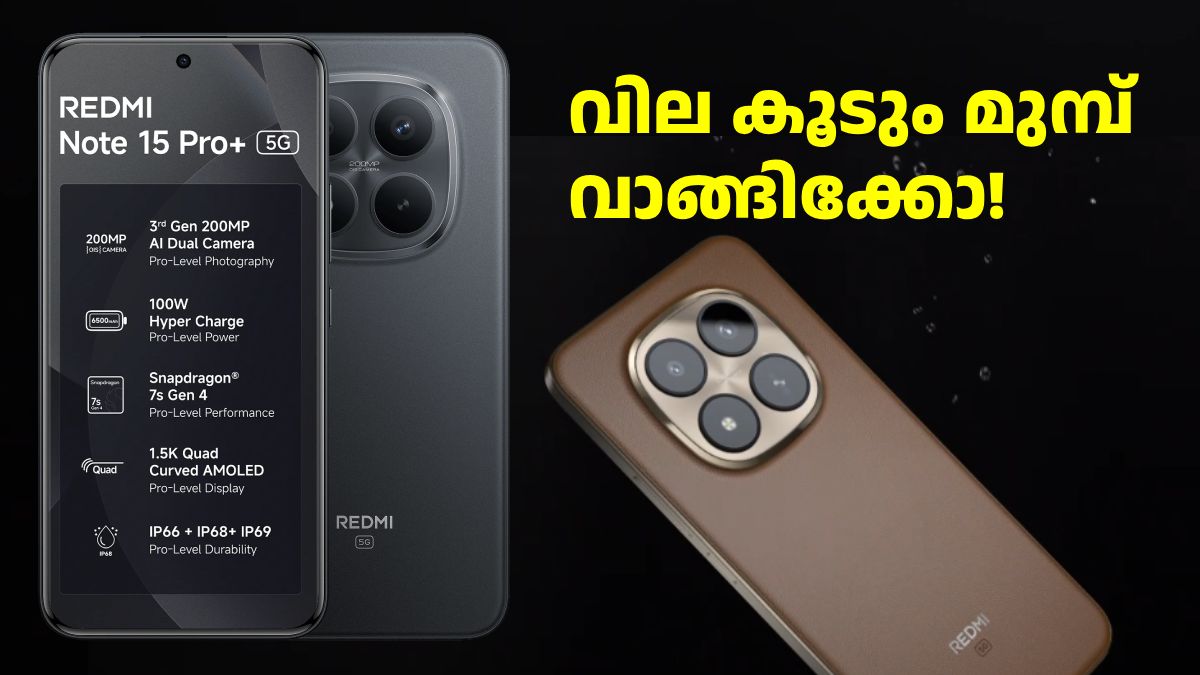 ഇതിനകം വിൽപ്പന ആരംഭിച്ച റെഡ്മി നോട്ട് 15 പ്രോ സീരീസിലെ ടോപ് മോഡലാണ് റെഡ്മി നോട്ട് 15 പ്രോ പ്ലസ് 5ജി. ഇതിന്റെ 8GB + 256GB വേരിയന്റിന് 37,999 രൂപയും, 12GB + 256GB വേരിയന്റിന് 39,999 രൂപയും, 12GB + 512GB വേരിയന്റിന് 43,999 രൂപയുമാണ് വില.