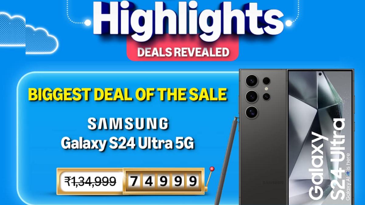 ആമസോൺ വെബ്സൈറ്റിൽ നൽകിയിരിക്കുന്ന വിവരങ്ങൾ പ്രകാരം ഈ പ്രൈം ഡേ സെയിലിലെ ഏറ്റവും പ്രധാന ഡീലുകളിലൊന്ന് സാംസങ് ഗാലക്സി എസ്24 അൾട്രയുടേത് (Samsung Galaxy S24 Ultra 5G) ആണ്. 134999 രൂപ വിലയിൽ ലോഞ്ച് ചെയ്യപ്പെട്ട എസ്24 അൾട്ര ഈ ഓഫർ സെയിലിൽ 74999 രൂപ വിലയിൽ ലഭ്യമാകുമെന്ന് ആമസോൺ പറയുന്നു.