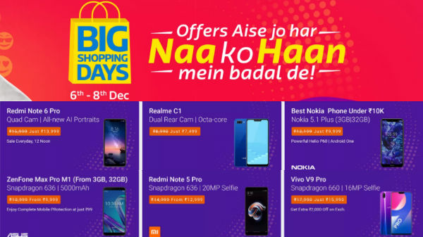 പ്രമുഖ ഓണ്ലൈന് ഷോപ്പിംഗ് സൈറ്റായ ഫ്ളിപ്കാര്ട്ടില് ബിഗ് ഷോപ്പിംഗ് ഡേ ആരംഭിച്ചു. ഇതിനോടനുബന്ധിച്ച് സ്മാര്ട്ട്ഫോണുകള്ക്ക് അത്ഭുതകരമായ ഓഫറുകളാണ് നല്കുന്നത്. 2018 ഡിസംബര് 6, അതായത് ഇന്നു മുതല് ഡിസംബര് 8 വരെയാണ് വില്പന നടക്കുന്നത്.