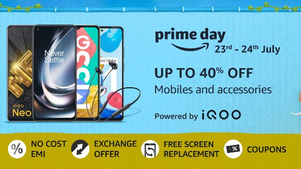 ജനപ്രിയ ഇ-കൊമേഴ്സ് പ്ലാറ്റ്ഫോമായ ആമസോൺ അതിന്റെ ഏറ്റവും ശ്രദ്ധേയമായ സെയിലുകളിൽ ഒന്നായ പ്രൈം ഡേ സെയിലിന്റെ തിയ്യതികൾ പ്രഖ്യാപിച്ചു. ജൂലൈ 23, 24 തിയ്യതികളിലാണ് പ്രൈം ഡേ സെയിൽ നടക്കുന്നത്. ഈ സെയിലിലൂടെ വമ്പിച്ച ഓഫറുകളും ഡിസ്കൌണ്ടുകളുമാണ് ആമസോൺ നൽകുന്നത്. ഓർഡർ ചെയ്ത് കഴിഞ്ഞാൽ ഒരു ദിവസത്തിനകമുള്ള ഡെലിവറി, നോ-കോസ്റ്റ് ഇഎംഐ ഓപ്ഷനുകൾ, എക്സ്ചേഞ്ച് ഡിസ്കൌണ്ടുകൾ എന്നിവയെല്ലാം ഈ സെയിൽ സമയത്ത് ലഭിക്കും.
