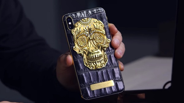 ഐഫോൺ ഷുഗർ സ്ക്കൽ പതിപ്പ് ഇതുവരെയുള്ള ഏറ്റവും പ്രീമിയം സൃഷ്ടികളിലൊന്നാണ്. 110 ഗ്രാം 18 കാരറ്റ് സ്വർണ്ണത്തിൽ നിന്നാണ് തലയോട്ടി നിർമ്മിച്ചിരിക്കുന്നത്, ഇത് വജ്രങ്ങളിൽ പൊതിഞ്ഞിരിക്കുന്നു.