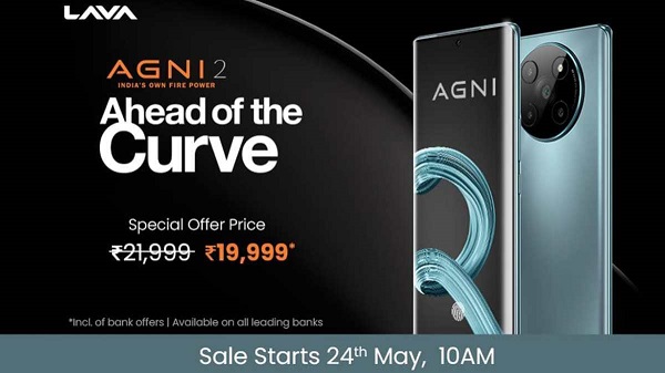 ലാവ അഗ്നി 2-ന്റെ 8ജിബി/ 256ജിബി മോഡലിന് 21,999 രൂപയാണ് ഇന്ത്യയിൽ വില. എങ്കിലും വിൽപ്പന ആരംഭിക്കുന്നതിനോട് അനുബന്ധിച്ച്, ഏതെങ്കിലും 'മേജർ' ബാങ്കിന്റെ ക്രെഡിറ്റ്, ഡെബിറ്റ് കാർഡ് വഴി അഗ്നി 2 5ജി വാങ്ങുമ്പോൾ 2,000 രൂപ ഇൻസ്റ്റന്റ് ഡിസ്കൗണ്ട് ലഭ്യമാകും. മേയ് 24ന് രാവിലെ 10 ന് ആണ് വിൽപ്പന ആരംഭിക്കുക.