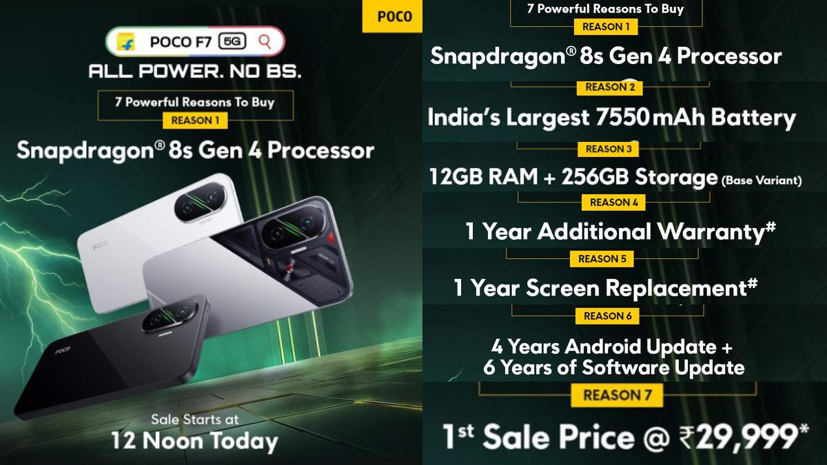വാങ്ങാൻ ഒന്നല്ല, ഏഴ് കാരണങ്ങൾ കാണിച്ചുതരാം; 7550mAh ബാറ്ററിയുമായി പോക്കോ F7 വിൽപ്പന തുടങ്ങി