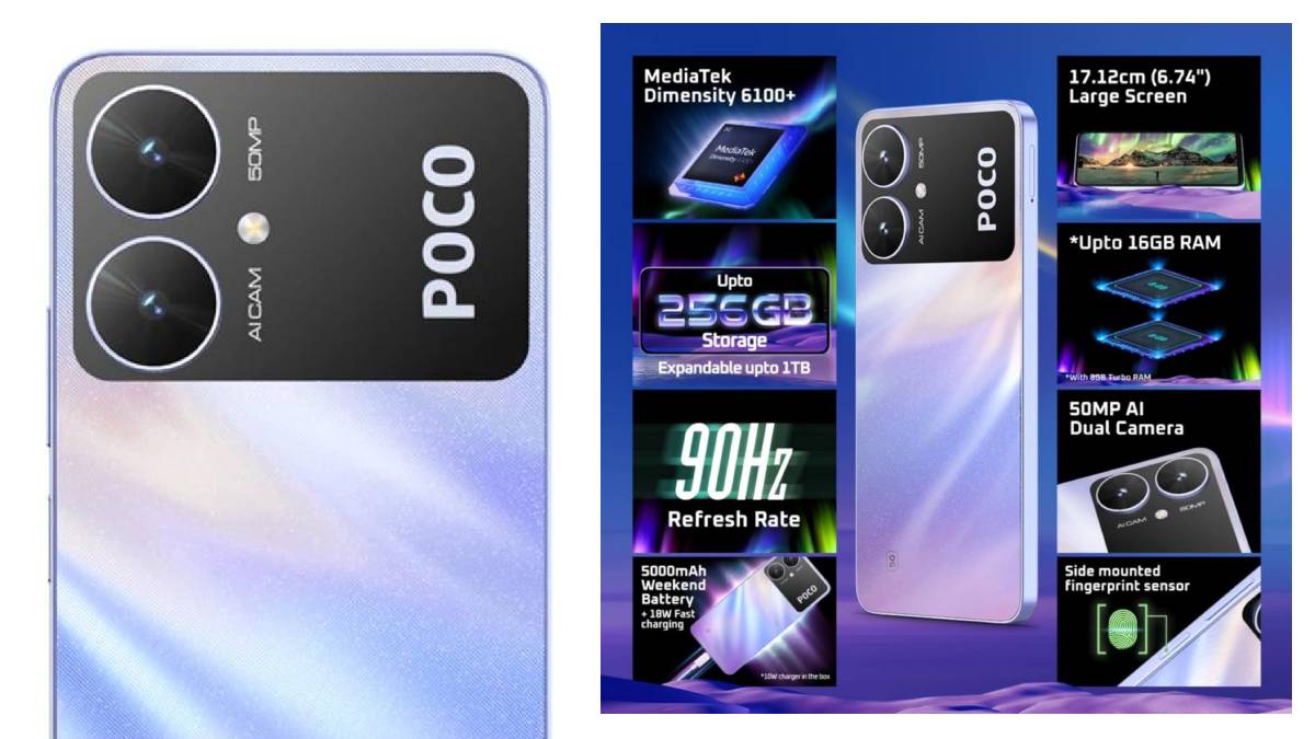 ഒക്ട-കോർ മീഡിയടെക് ഡൈമെൻസിറ്റി 6100+ 6nm ചിപ്സെറ്റാണ് ഈ സ്മാർട്ട്ഫോണിന്റെ പ്രധാന ശക്തികേന്ദ്രം. ഗെയിമിങ് മികച്ചതാക്കാൻ Mali-G57 MC2 ജിപിയുവും ഇതിലുണ്ട്. ബ്രൗസിങ്, ഡൗൺലോഡുകൾ, സിനിമകൾ സ്ട്രീം ചെയ്യൽ തുടങ്ങിയ സാധാരണക്കാരുടെ ആവശ്യങ്ങൾ ഭംഗിയായി നിറവേറ്റാൻ ശേഷിയോടെയാണ് ഈ പോക്കോ ഫോൺ എത്തുന്നത്. 5ജി ഫോൺ ബജറ്റ് വിലയിൽ ലഭ്യമാകുന്നു എന്നതുതന്നെ ഈ ഫോൺ വാങ്ങാൻ നിരവധി പേർക്ക് ഒരു കാരണമാണ്.