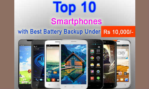 നിലവില് ഇന്ത്യയില് ലഭ്യമായ മികച്ച ബാറ്ററി ബാക്കപ്പുള്ളതും 10,000 രൂപയില് താഴെ വിലവരുന്നതുമായ 10 ഹാന്ഡ്സെറ്റുകള് ചുവടെ കൊടുക്കുന്നു.