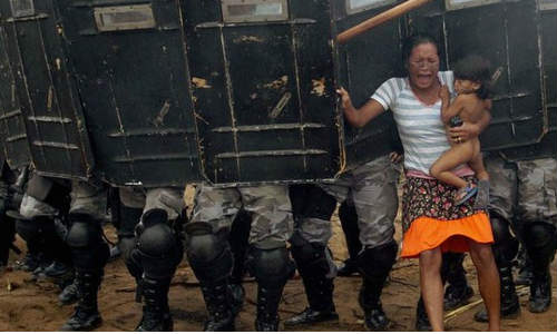 പ്രസിഡന്റ് വഌഡിമര് പുടിനെതിരെ പ്രതിഷേധപ്രകടനം നടത്തുന്ന കലാപകാരികളെ നേരിടാന് തയാറായി നില്ക്കുന്ന പട്ടാളക്കാര്ക്കു നടുവിലേക്ക് സൈക്കിളുമായി ചെല്ലുന്ന ബാലന്.