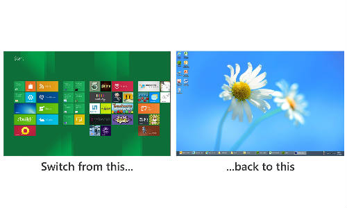 വിന്ഡോസ് 8ന് രണ്ട് വ്യക്തിത്വമുണ്ട്. കാരണം ഇത് വിന്ഡോസിന്റെ രണ്ട് വേര്ഷനുകള് കൂട്ടിച്ചേര്ത്തുണ്ടാക്കിയതാണ്. ആദ്യം കാണുന്ന ടച്ച്സ്ക്രീനിന് വേണ്ടിയുള്ള സ്റ്റാര്ട്ട് സ്ക്രീന്. അതിലെ ഡെസ്ക്ടോപ്പ് ഓപ്ഷനില് ക്ലിക്ക് ചെയ്താല് ലഭിയ്ക്കുന്ന പരിചയമുള്ള വിന്ഡോസ് 7 അന്തരീക്ഷം. അതായത് സ്റ്റാര്ട്ട് സ്ക്രീന് വിട്ട് ഉള്ളില് കയറിയാല് വിന്ഡോസ് പഴയ വിന്ഡോസ് തന്നെ. പക്ഷെ കുറേ സൗകര്യങ്ങളില് മാറ്റമുണ്ടുതാനും.