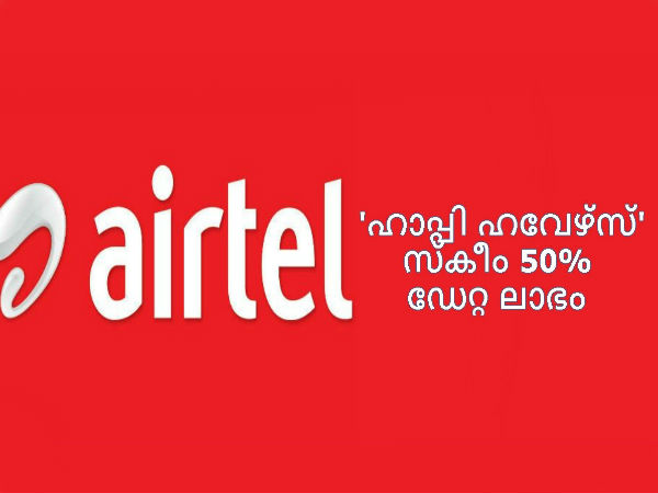 എയര്ടെല്ലിന്റെ പുതിയ സ്കീം 50% ഡേറ്റ തിരിച്ചു ലഭിക്കും..