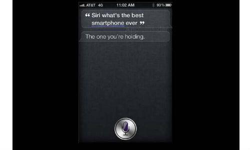 ശബ്ദനിര്ദ്ദേശങ്ങള്ക്കനുസരിച്ച് പ്രവര്ത്തിക്കുന്ന ഐഫോണ് ആപ്ലിക്കേഷനായ സിരി ദിവസങ്ങള്ക്ക് മുമ്പാണ് ഏറ്റവും മികച്ച സ്മാര്ട്ഫോണ് ലൂമിയ 900 ആണ് എന്ന് പറഞ്ഞത്. എന്നാല് ഇപ്പോള് അതേ ചോദ്യം ആവര്ത്തിച്ചാല് ഉത്തരം നിങ്ങളുടെ കയ്യിലുള്ളതു തന്നെ എന്നാണ് അതായത് ഐഫോണ് 4എസ്.