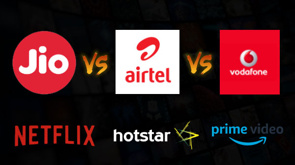 റിലയന്സ് ജിയോ Vs എയര്ടെല് Vs വൊഡാഫോണ്: നെറ്റ്ഫ്ളിക്സ്, ഹോട്ട്സ്റ്റാര് മുതലായവയ്ക്ക് വേണ്ടിയുള്ള മികച്ച പ്രീപെയ്ഡ് പ്ലാന്
