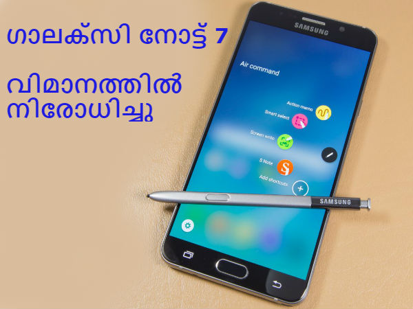 വിമാനത്തില് സാംസങ്ങ് ഗാലക്സി നോട്ട് 7 നിരോധിക്കുന്നു!