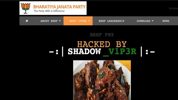 ബി.ജെ.പിയുടെ വെബ്സൈറ്റ് ഹാക്ക് ചെയ്തു; പല പേജുകളിലും ബീഫിൻറെ വിഭവങ്ങൾ