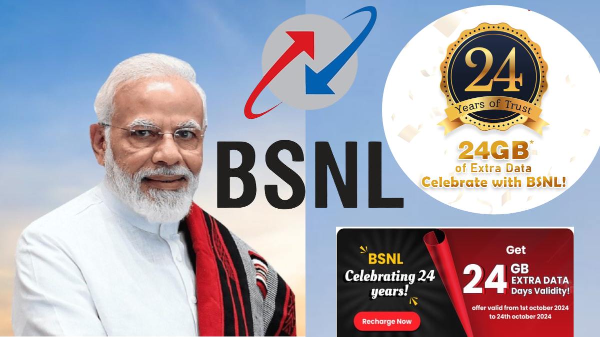 വിശ്വാസത്തിന്റെ 24 വർഷങ്ങൾ എന്ന ടാഗ്ലൈനോടെയാണ് ബിഎസ്എൻഎൽ 24 വർഷത്തെ പ്രവർത്തനം ആഘോഷമാക്കുന്നത്. ഈ ആഘോഷത്തിൽ വരിക്കാരെയും ഭാഗമാക്കുന്നതിന്റെ ഭാഗമായിട്ടാണ് അവർക്കായി 24ജിബി എക്സ്ട്രാ ഡാറ്റ പ്രഖ്യാപിച്ചിരിക്കുന്നത്. 500 രൂപയ്ക്ക് മുകളിലുള്ള എല്ലാ പ്രീപെയ്ഡ് റീച്ചാർജ് പ്ലാനുകൾക്കൊപ്പവും ഈ 24ജിബി സൗജന്യ ഡാറ്റ ലഭ്യമാകും.