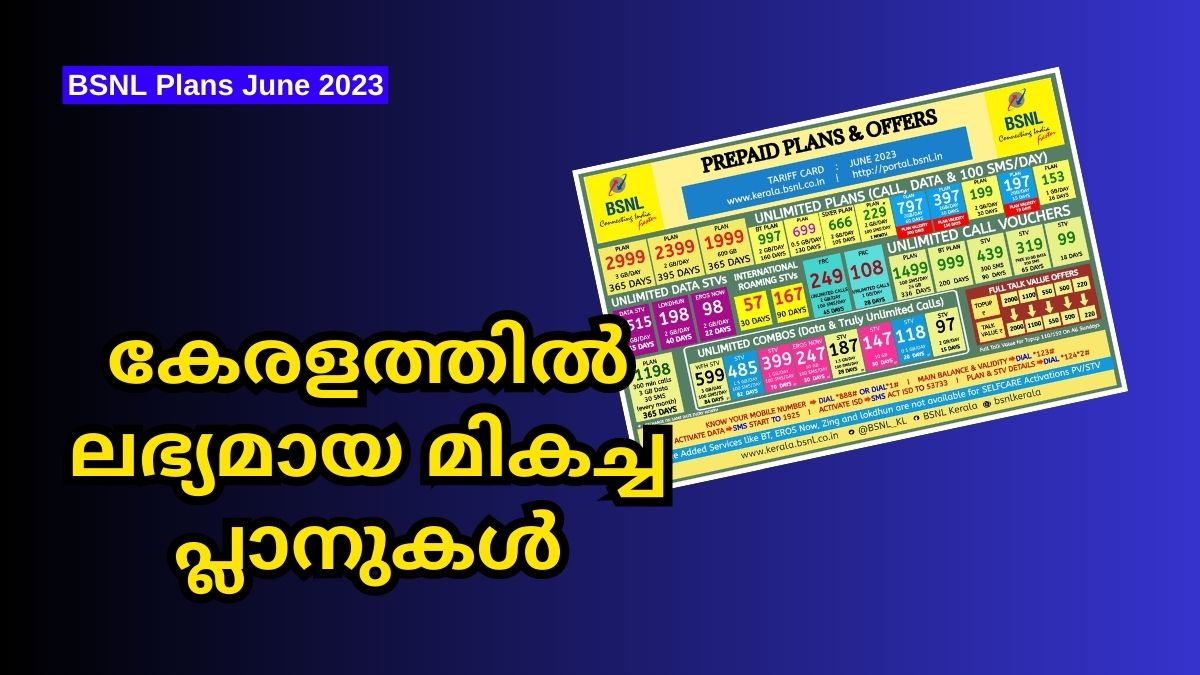 ബിഎസ്എൻഎൽ ഏറ്റവും പ്രതീക്ഷയോടെ കാണുന്ന ടെലിക്കോം സർക്കിളുകളിൽ ഒന്നാണ് കേരളം. അതിനാൽ തന്നെ മറ്റ് സർക്കിളുകളെ അപേക്ഷിച്ച് അത്യാവശ്യം നല്ല സേവനവും പ്ലാനുകളും സംസ്ഥാനത്ത് ബിഎസ്എൻഎൽ (BSNL) നൽകുന്നുമുണ്ട്. ജൂൺ മാസത്തിൽ കേരളത്തിൽ ലഭ്യമായ ഏറ്റവും മികച്ച അൺലിമിറ്റഡ് പ്രീപെയ്ഡ് റീചാർജ് പ്ലാനുകളെക്കുറിച്ചറിയാൻ തുടർന്ന് വായിക്കുക.