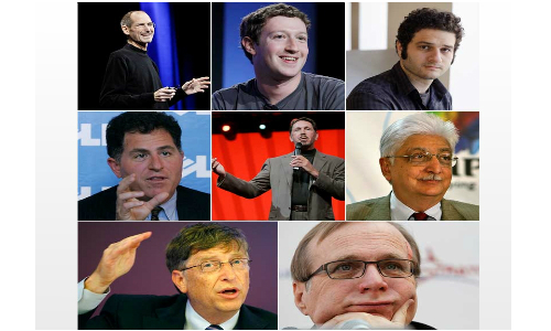 അതുപോലെ കുറേ ഉദാഹരണങ്ങളുണ്ട്. ഫേസ്ബുക്ക് സ്ഥാപകന് മാര്ക്ക് സക്കര്ബര്ഗാണ് ഏറ്റവും പുതിയ ഉദാഹരണം. രണ്ടാം വര്ഷ വിദ്യാര്ത്ഥിയായിരിയ്ക്കെയാണ് സക്കര്ബര്ഗ് ഹാര്വാര്ഡ് വിടുന്നത്. ഇറങ്ങിപ്പോരുമ്പോള് മുമ്പില് ഫേസ്ബുക്ക് എന്ന വഴി ഉണ്ടായിരുന്നു എന്ന് മാത്രം. അങ്ങനെ പഠിത്തം പാതിയില് നിര്ത്തി, പുറത്തേക്കിറങ്ങി സ്വന്തം സ്വപ്നങ്ങളിലൂടെ വളര്ന്ന ചില കോടീശ്വരന്മാരെ കാണാം. ഗാലറിയില് നോക്കൂ.