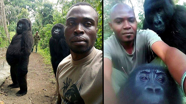 കോങ്കോയിലുള്ള ഒരു പാർക്ക് ജീവനക്കാരൻ താനും രണ്ട് ഗോറില്ലകളുമൊത്തുള്ള വൈറലായ സെൽഫി എങ്ങനെ എടുത്തുവെന്ന് ഇവിടെ വിവരിക്കുന്നു.