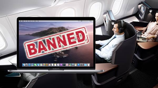 2015സെപ്റ്റംബറിനും 2017 ഫെബ്രുവരിക്കും ഇടയിൽ ആപ്പിൽ വിൽപ്പന നടത്തിയ 15 ഇഞ്ച് മാക്ബുക്ക് പ്രോ ലാപ്ടോപ്പുകൾക്കാണ് ഇന്ത്യയിലെ വിമാനങ്ങളിൽ വിലക്ക് ഉള്ളത്. ചെക്ക് ഇന്നിലോ ബാഗേജിലോ ഇത്തരം മാക്ബുക്കുകൾ കൊണ്ടുപോകരുതെന്ന് ഡിജിസിഎ അറിയിച്ചു. അമേരിക്കൻ റഗുലേറ്ററി ബോഡിയായ FAAയും ഈ മോഡലുകൾക്ക് വിമാനങ്ങളിൽ വില്ക്ക് ഏർപ്പെടുത്തിയിരുന്നു.