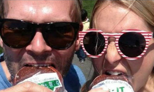 ഐസ് ക്രീം സാന്ഡ്വിച്ച് കഴിക്കുന്ന ജീവനക്കാര്.