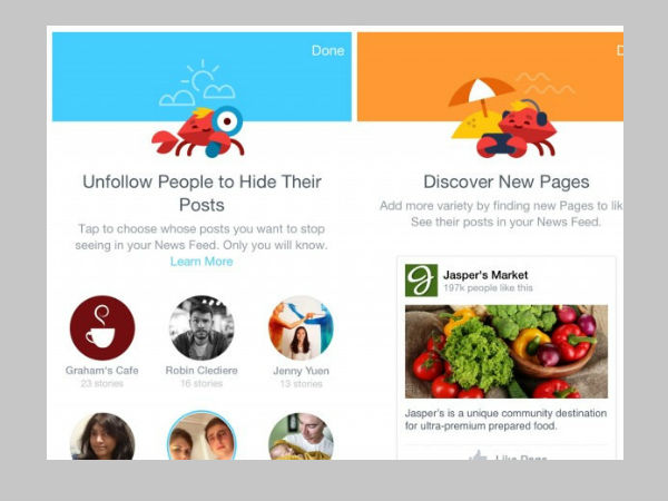 സ്വന്തം കൈയില് മുറുക്കി പിടിച്ചിരിക്കുന്ന പോസ്റ്റുകളുമായി നില്ക്കുന്ന ഞണ്ടാണ് ഈ സവിശേഷതയ്ക്ക് നല്കിയിരിക്കുന്ന ചിഹ്നം. ഏത് പോസ്റ്റാണ് ആദ്യം നമുക്ക് മുന്നില് എത്തേണ്ടത്, ആരുടെ പോസ്റ്റുകളാണ് ഒഴിവാക്കേണ്ടത്, പുതിയ പേജുകള് എങ്ങനെയാണ് കണ്ടെത്തേണ്ടത് തുടങ്ങിയ പ്രത്യേകതകളാണ് ഈ സവിശേഷതയ്ക്ക് നല്കിയിരിക്കുന്നത്.