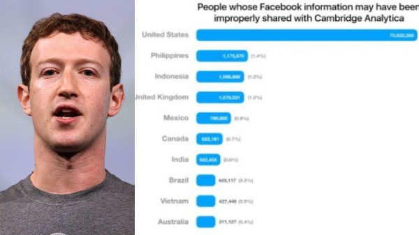 അവസാനം ഫേസ്ബുക്ക് ഡാറ്റ ചോർന്നതുമായി ബന്ധപ്പെട്ട വിവരങ്ങൾ പുറത്തുവിട്ടു. ഫേസ്ബുക്കിന്റെ ചീഫ് ടെക്നോളജി ഓഫിസർ മൈക്ക് സ്ക്രോഫർ ഒരു ബ്ലോഗ് പോസ്റ്റ് വഴിയാണ് കാര്യങ്ങൾ പുറത്തുവിട്ടിരിക്കുന്നത്. മൊത്തം 87 മില്യൺ ആളുകളുടെ ഡാറ്റ ചോർന്നു. ഇതിൽ 81 ശതമാനവും അമേരിക്കയിലാണ്. ഈ 87 മില്യണിൽ ഇന്ത്യക്കാരുടേത് 0.6 ശതമാനം മാത്രമേ ചോർന്നിട്ടുള്ളൂ. അതായത് 562455 പേരുടെ വിവരങ്ങൾ.