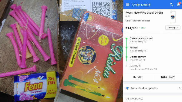 ഫ്ലാഷ് സെയിലിൽ ഏറെ കാത്തിരുന്നാണ് അവസാനമൊന്ന് ഫോൺ ബുക്ക് ചെയ്യാൻ പറ്റിയത്. അങ്ങനെ ഫനാൻ മെയ് 23ന് ഫോൺ ഓർഡർ ചെയ്തു. 14999 രൂപയുടെ റെഡ്മി നോട്ട് 5 പ്രൊ ആയിരുന്നു ഓർഡർ ചെയ്തത്. ഓർഡർ ചെയ്ത് അന്ന് തന്നെ പാക്കിങ്ങ് കഴിഞ്ഞു 24നു ഡെലിവറിക്കായി പുറത്തെത്തി. അങ്ങനെ 29നു അടുപ്പിച്ച് എത്തും എന്ന് നോട്ടിഫിക്കേഷൻ ലഭിച്ചിരുന്നെങ്കിലും ഇന്ന് തന്നെ ഡെലിവറി ലഭിക്കുകയായിരുന്നു.