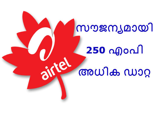 എയര്ടെല് സൗജന്യമായി 250 എംപി അധിക ഡാറ്റ നല്ക്കുന്നു!