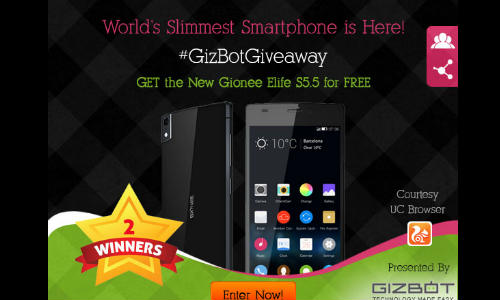 ഗിസ്ബോട് വായനക്കാര്ക്ക് സൗജന്യമായി സ്മാര്ട്ഫോണ് സ്വന്തമാക്കാന് വീണ്ടും അവസരം. UC ബ്രൗസര് സ്പോണ്സര് ചെയ്യുന്ന ഞങ്ങളുടെ ഗിവ്എവെ മത്സരത്തില് വിജയികളാവുന്ന രണ്ടുപേര്ക്ക് 22,000 രൂപ വിലവരുന്ന, ലോകത്തെ ഏറ്റവും കട്ടികുറഞ്ഞ സ്മാര്ട്ഫോണായ ജിയോണി എലൈഫ് S5.5 ആണ് സമ്മാനമായി ലഭിക്കുക.