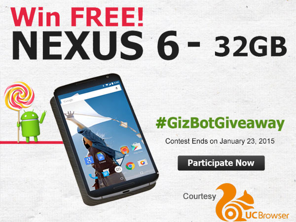 ഗിസ്ബോട്ട് സമ്മാനം: സൗജന്യമായി ഗൂഗിള് നെക്സസ് 6 നേടൂ..! കടപ്പാട് യുസി ബ്രൗസര്