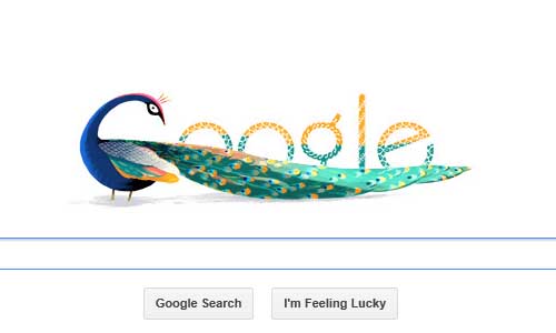 ഇന്ത്യയുടെ സ്വാതന്ത്ര്യദിനാഘോഷത്തിന് മാറ്റുകൂട്ടി ഗൂഗിളും. 65മത് സ്വാതന്ത്ര്യദിനം ആഘോഷിക്കുന്ന വേളയില് ഗൂഗിള് ഇന്ത്യ ഹോംപേജില് ഇന്ത്യന് ഇന്റര്നെറ്റ് ഉപയോക്താക്കളെ സ്വീകരിക്കുന്നത് ഇന്ത്യന് ദേശീയ പക്ഷിയായ മയിലിന്റെ ഡൂഡിലാണ്.