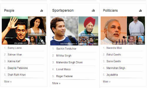 2013 -ല് ഇന്റര്നെറ്റില് ഏറ്റവും കൂടുതല് സെര്ച് ചെയ്യപ്പെട്ട വ്യക്തി ആരാണ്. രാഷ്ട്രീയത്തില് ബി.ജെ.പിയുടെ പ്രധാനമന്ത്രി സ്ഥാനാര്ഥി നരേന്ദ്രമോഡിയാണെങ്കില് സ്പോര്ട്സില് സാക്ഷാല് സച്ചിന് ടെണ്ടുല്ക്കര് തന്നെ. ബോളിവുഡ് നടിമാരില് കത്രീന കൈഫും നടന്മാരില് സല്മാന്ഖാനും.