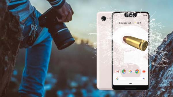 സ്റ്റുഡിയോ ഇൻസെൻഡോ ട്വീറ്റ് ചെയ്ത ഫോട്ടോകൾ വ്യക്തമാക്കുന്നത് ഗൂഗിൾ പിക്സൽ സ്മാർട്ഫോണിൻറെ പിന്നിലെ പാനലിന്റെ അടിഭാഗത്ത് ബുള്ളറ്റ് തുളഞ്ഞുകയറിയതായിട്ടാണ്. നോട്ട് പിങ്ക് നിറത്തിലുള്ള ഗൂഗിൾ പിക്സൽ 3 എക്സ്എല്ലാണ് വെടിയേറ്റ് നശിച്ച സ്മാർട്ട്ഫോൺ. സ്മാർട്ട്ഫോൺ ബുള്ളറ്റ് കൊണ്ട് കേടായിട്ടും അത് ഓണാകുന്നുണ്ട്. ചിത്രങ്ങളിലൊന്ന് കാണിക്കുന്നത് സ്ക്രീനിന്റെ അടിയിൽ ഒരു വലിയ കേടുപാട് ഉള്ളതായി കാണിക്കുന്നു, അതിന് പിന്നിൽ നിന്ന് ബുള്ളറ്റ് കൊണ്ടത് കാണിക്കുന്നു. സ്ക്രീൻ അതിന്റെ ആഘാതം കാരണം പിക്സൽ ബ്ലീഡും വന്നിട്ടുണ്ട്. എന്നിരുന്നാലും, ഫോണിൽ വരുന്ന നോട്ടിഫിക്കേഷനുകൾ ഡിസ്പ്ലേയിൽ എളുപ്പത്തിൽ കാണാൻ കഴിയും. കേടായ പിക്സൽ 3 എക്സ്എൽ ഉപയോഗിക്കുവാൻ കഴിയില്ല, എന്നിരുന്നാലും അത് അത്ര മോശമായ രൂപത്തിലുമല്ല.