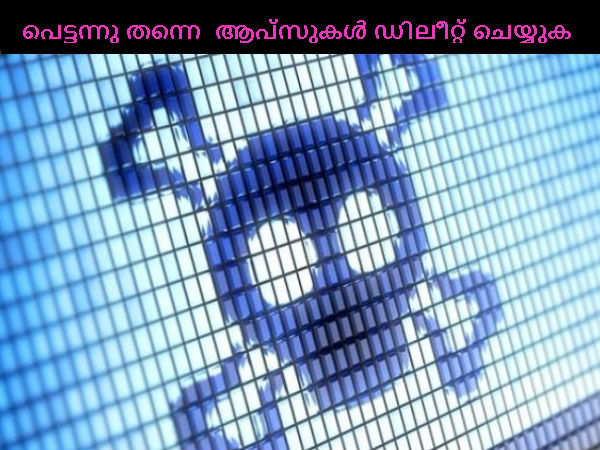 ടോപ്പ് ഗണ് ഗയിമിംഗ് ആപ്പ്, എംപിജംഗി-മ്യൂസിക് ആപ്പ്, ബിഡിജംഗി- വീഡിയോ ആപ്പ് , ടോക്കിംഗ് ഫ്രോഗ് എന്നീ നാല് ആപ്സുകളാണ് നിങ്ങള് എത്രയും പെട്ടന്നു ഡിലീറ്റ് ചെയ്യേണ്ടത്.