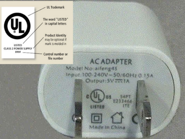 ആമസോണ് കിന്ഡല് യുഎസ്ബി അഡാപ്റ്ററിന്റെ ശരിയായ കൗണ്ടര്ഫീറ്റ് യുഎല് മാര്ക്ക് ചിത്രത്തിന്റെ ഇടതു വശത്ത് മുകളിലായി കൊടുത്തിരിക്കുന്നതാണ്.