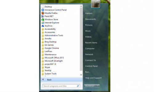 ലഭ്യമായവയില് ഏറ്റവും മികച്ച ഓപ്ഷനാണിത്. വിന്ഡോസ് 7ല് കണ്ട്, പരിചയിച്ച അതേ സ്റ്റാര്ട്ട് മെനു നിങ്ങള്ക്ക വിന്ഡോസ് 8ലും ഉപയോഗിയ്ക്കാനാകും. ഏറ്റവും താഴെ സെര്ച്ച് ബാറും, അതിനോട് ചേര്ന്ന് ഷട്ട് ഡൗണ് ഓപ്ഷനുമുള്ള ഈ ഡിസൈന് വിന്ഡോസ് 8 ഉപയോഗത്തെ അപരിചിതത്വങ്ങളെല്ലാം ഒഴിവാക്കി അനായാസമാക്കും.