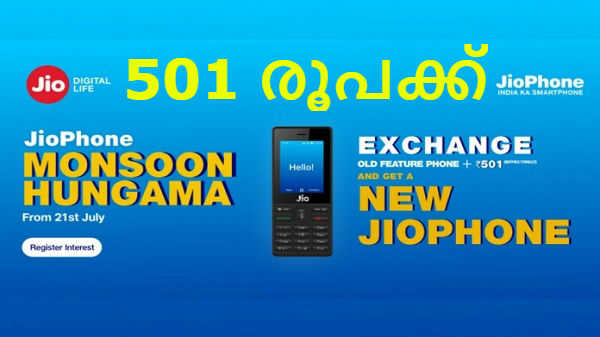 501 രൂപക്ക് ജിയോഫോൺ സ്വന്തമാക്കാൻ അവസരമൊരുക്കി ജിയോ 'മൺസൂൺ ഹങ്കാമ'!