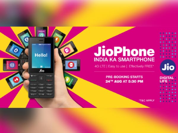 ജിയോ ഫോണ് പ്രീ-ബുക്കിങ്ങ് ആരംഭിക്കുന്നു.