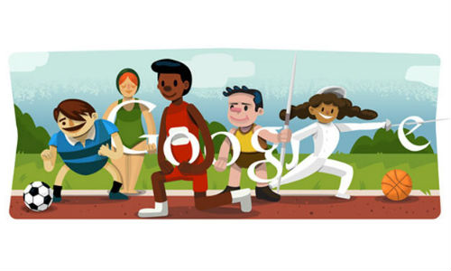 ഈ അത്ലറ്റുകള് ഗൂഗിള് ലോഗോ അക്ഷരങ്ങള് പിടിച്ചുനില്ക്കുന്ന രീതിയിലാണ് ഡൂഡില്. ഫൂട്ബോള്, നീന്തല്, ജംപിംഗ്, ജാവലിന് ത്രോ, ഫെന്സിംഗ്, ബാസ്കറ്റ്ബോള് താരങ്ങളാണ് ഡൂഡിലില് സ്ഥാനം നേടിയിട്ടുള്ളത്.