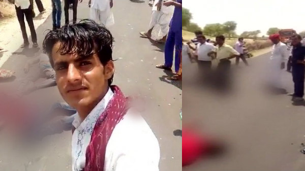 രാജസ്ഥാനിലെ ബാർമാർ ജില്ലയിൽ നിന്നുമാണ് മനഃസ്സാക്ഷിക്ക് നിരക്കാത്തതും ഏറെ പൈശാചികവുമായ ഈ സംഭവം റിപ്പോർട്ട് ചെയ്യപ്പെട്ടിരിക്കുന്നത്. ചൊവ്വാഴ്ച ഉച്ച കഴിഞ്ഞായിരുന്നു സംഭവം. ഒരു വാഹനാപകടത്തെ തുടർന്ന് നടുറോഡിൽ മൂന്ന് ജീവനുകൾ പിടയുമ്പോൾ അതിനടിയിൽ നിന്നുകൊണ്ടും സെൽഫി എടുക്കുകയായിരുന്നു ഈ യുവാവ്. സെൽഫിയാണ് എടുത്ത ചിത്രം സോഷ്യൽ മീഡിയയിൽ വൈറൽ ആയതോടെ ഇയാൾക്കെതിരെ കനത്ത വിമർശനങ്ങൾ ഉയരുകയായിരുന്നു.