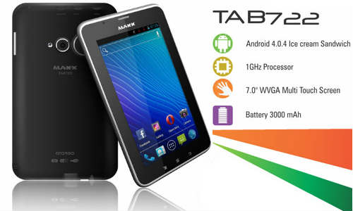 സ്മാര്ട്ട്ഫോണ് നിര്മാതാക്കളായ മാക്സ് മൊബൈല്, 8000 രൂപ വിലവരുന്ന ടാബ്ലറ്റ് വിപണിയിലിറക്കി. ടാബ് 722 എന്നു പേരിട്ടിരിക്കുന്ന ഡ്യുവല് സിം ടാബ്ലറ്റില് വോയിസ് കോളിംഗ് സൗകര്യവുമുണ്ട്.