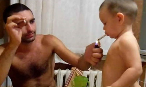 ഈ പ്രായത്തില് തന്നെ കുഞ്ഞിനെ സിഗററ്റ് വലി പഠിപ്പിക്കുന്ന അപ്പന്