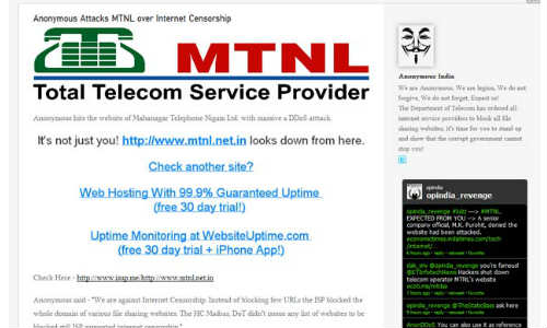 ടെലികോം സര്വീസ് പ്രൊവൈഡര്മാരായ എം.ടി.എന്.എല്ലിന്റെ മുബൈ ഉപഭോക്താക്കള്ക്കായുള്ള വെബ്സൈറ്റ് ഹാക്ക് ചെയ്യപ്പെട്ടു. ഓസ്ട്രേലിയയിലിരുന്ന് പ്രവര്ത്തനങ്ങള് നിയന്ത്രിക്കുന്ന പാകിസ്താനി ഹാക്കറാണ് ഇതിനു പിന്നിലെന്നാണ് കരുതുന്നത്. അതേസമയം വെബ്സൈറ്റ് പ്രവര്ത്തനക്ഷമമായതായി എം.ടി.എന്.എല്. ഇന്നലെ അറിയിച്ചു.
