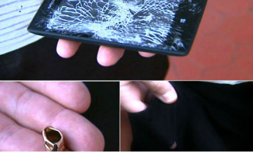 രക്ഷപ്പെടാനായി അക്രമികള് പോലീസുകാരനു നേരെ വെടിയുതിര്ക്കാനും തുടങ്ങി. ഒരെണ്ണം ഉന്നം തെറ്റി പോയപ്പോള് മറ്റൊരെണ്ണം പോക്കറ്റിന്റെ ഭാഗത്താണ് കൊണ്ടത്. പക്ഷേ പോലീസുകാരന് ഒന്നും സംഭവിച്ചില്ല. കാരണം പോക്കറ്റിലുണ്ടായിരുന്ന നോകിയ ലൂമിയ 520-ലാണ് വെടിയുണ്ട കൊണ്ടത്.