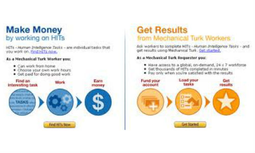 ആമസോണ് വെബ് സര്വീസിന്റെ 'ജോലിക്കാര്ക്കായുളള മാര്ക്കറ്റാ'ണ് ആമസോണ് മെക്കാനിക്കല് ടര്ക്ക്. സൈറ്റുകള് പരിശോധിക്കുക, ബിസിനസ് സംബന്ധമായ ലേഖനങ്ങള് എഴുതുക, സര്വെകള് നടത്തുക തുടങ്ങിയ ജോലികളിലൂടെ നല്ലൊരു തുക സമ്പാദിക്കാം. ഏറ്റെടുത്ത ജോലി പൂര്ത്തിയാക്കുന്ന മുറയ്ക്ക് പ്രതിഫലം ലഭിക്കും.