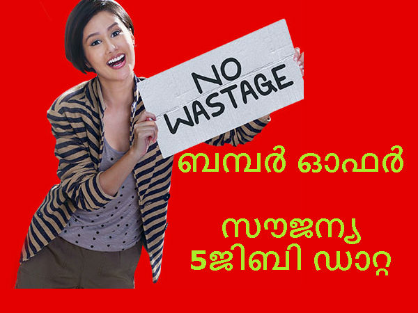 സൗജന്യ 5ജിബി ഡാറ്റ ആസ്വദിക്കാം